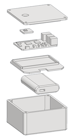 This is where CAD came in. Using Autodesk Inventor, I modeled a tray to hold the Raspberry Pi computer that would sit over the portable battery being used for power. The tray included specific tolerances to hold the computer snug and a small notch to allow the adapter for the battery to come through.